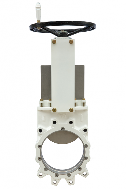 VÁLVULA DE GUILHOTINA TIPO WAFER BI-DIRECIONAL - SÉRIE M MANUAL POR VOLANTE COM REDUTOR DE TORQUE