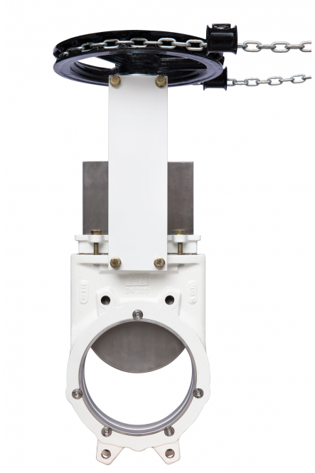 VÁLVULA DE GUILHOTINA TIPO WAFER BI-DIRECIONAL - SÉRIE M MANUAL POR VOLANTE COM REDUTOR DE TORQUE