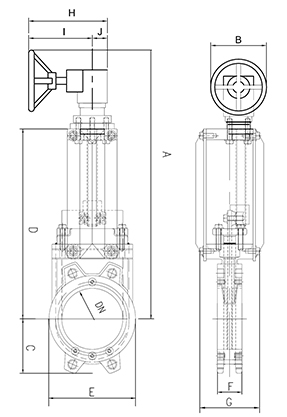 Acionamento manual por volante com redutor de torque (Passe o mouse para visualizar as medidas)
